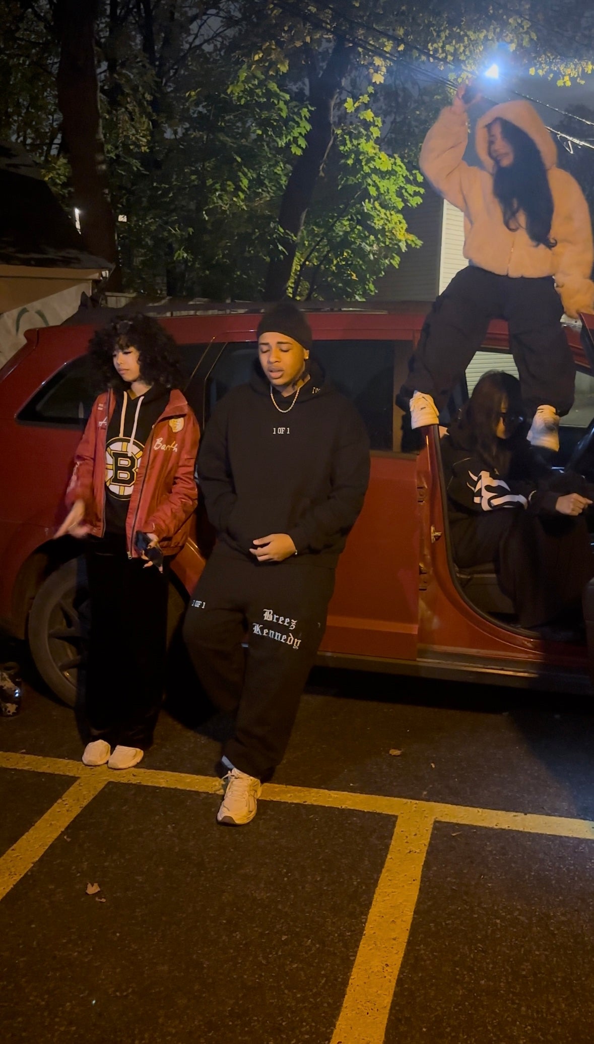 Breez Kennedy in his custom Eclipse Black Tracksuit making content for his song Love Language