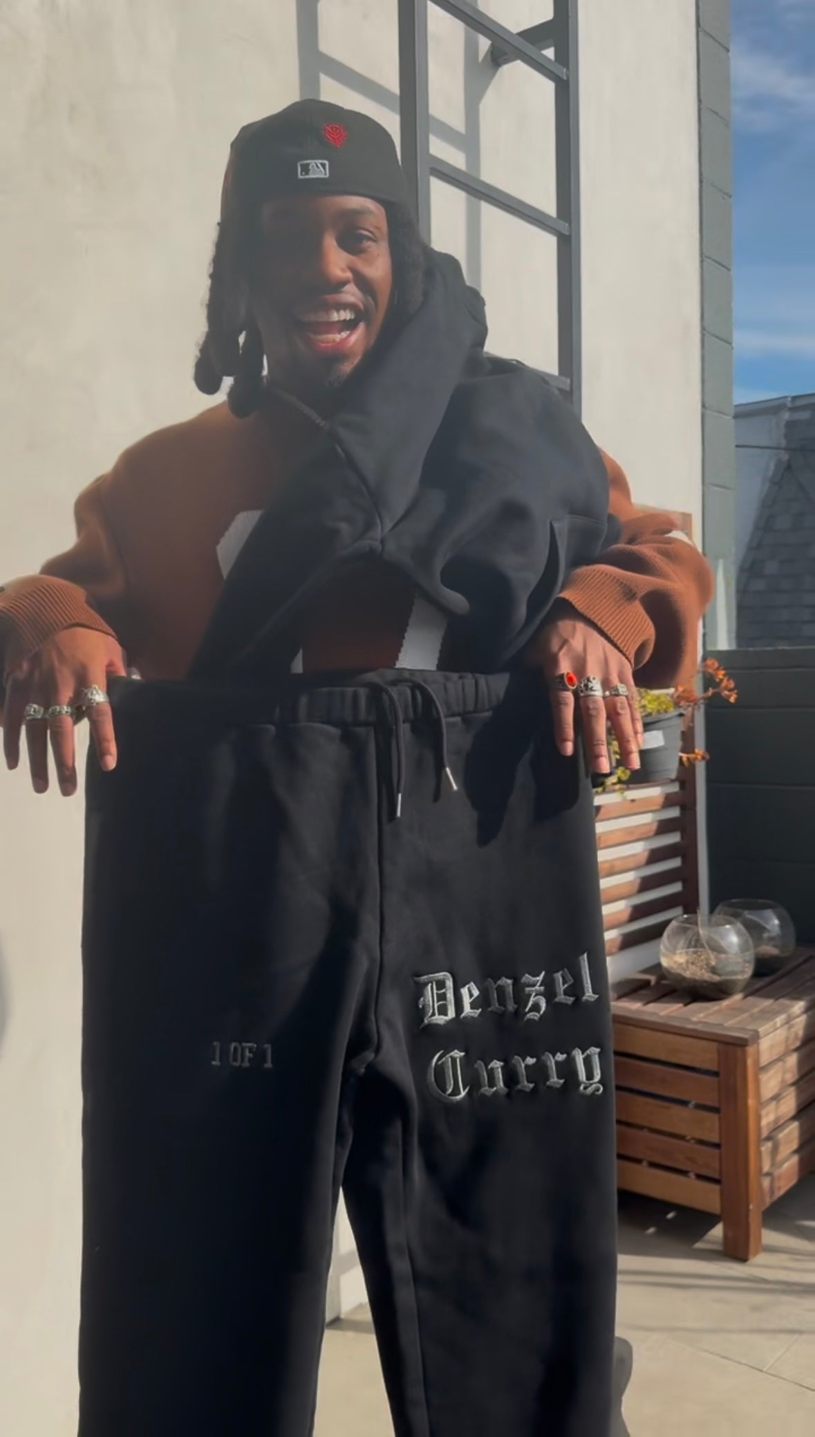 Denzel Curry showcasing his Customized Eclipse Black tracksuit.