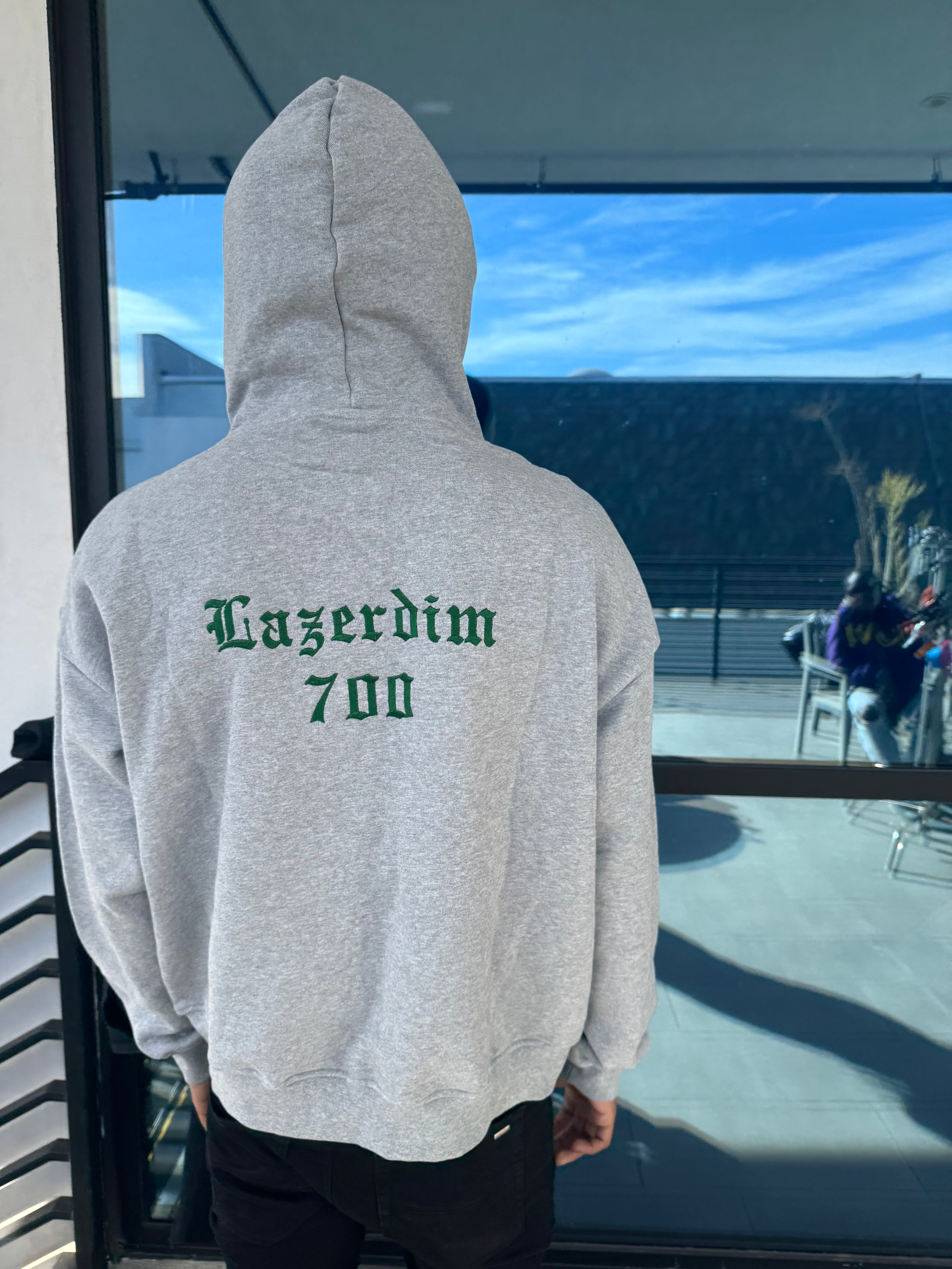 Lazer Dim 700 wearing his customized Heather Grey hoodie as seen on Genius.